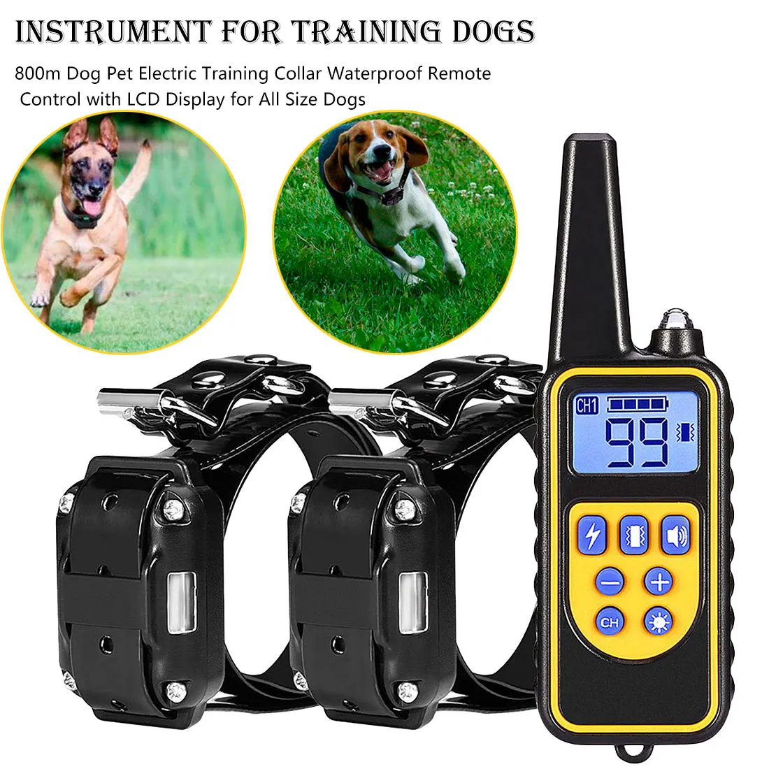 .Gallery for Dog Training Collar 800m for Medium Large Electric LCD Display Rechargeable Waterproof Electronic Training Collar